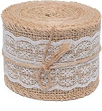 ZHENGTU 1 Rolls 2 Inch Width Natural Jute Burlap Ribbon with White Lace for DIY Home Decoration, Wedding Party Art and Craft and Gift Packaging (1 Rolls)