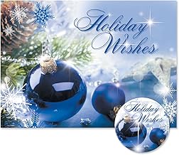 ブルーディスプレイ パーソナライズクリスマスカード お揃いのシール付き 24枚セット