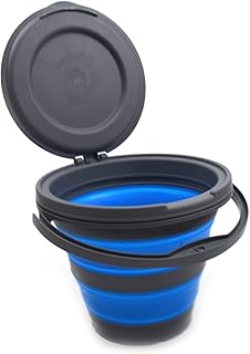 SAMMART 5L 折りたたみ 釣り バケット 取り外し可能ふた付き - 折りたたみ ラウンド 浴槽 - ポータブル プラスチック 水 バケツ - 省スペース アウトドア ウォーターポット - トランク オルガナイザー 全タイプ車両用 (1) グレー/ブルー