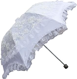 Honeystore 折りたたみ 日傘 uvカット 100 遮光 レース日傘 二重 フリル 手作り刺繍 花嫁 結婚式 撮影傘 パラソル 白