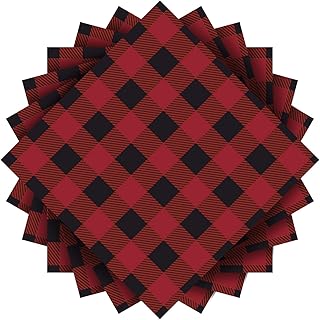 Aneco 赤と黒の格子柄ペーパーナプキン ランチョンナプキン 結婚式 パーティー 誕生日 ディナー用 3層 6.5 x 6.5インチ レッド Aneco