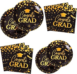 Aneco 卒業パーティー食器 パーティー用品 パーティーパック 卒業紙皿とナプキン 24人用 98ピース