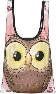 エコバッグ 折りたたみ ピンクの花とフクロウ コンビニバッグ 買い物バッグ 買い物袋 レジカゴバッグ 水や汚れにも強い