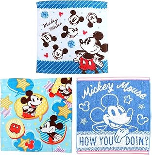 林 ディズニー ミッキーマウス ハンドタオル 薄手 3柄セット(ブルー・トーキー・チアリー)